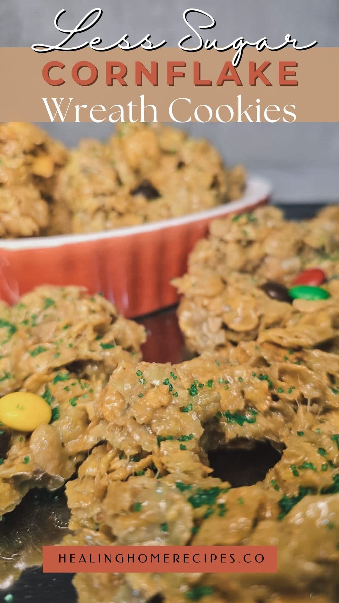 Make these less sugar cornflake wreath cookies using Max Mellows for a festive, gooey, low-sugar Christmas treat. Easy, cute, and perfect for cookie trays and holiday parties.